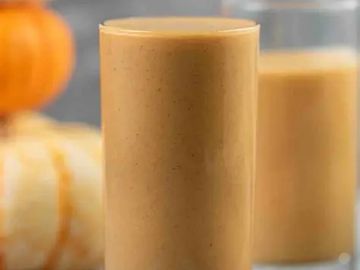 Vanilla whey protein, pumpkin puree, non-fat Greek yogurt, pumpkin caramel , pumpkin spice flavors and 2% or oat milk.