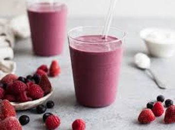Vanilla or Chocolate whey protein, choice of blueberries or strawberries, non-fat Greek yogurt and 2% or oat milk.